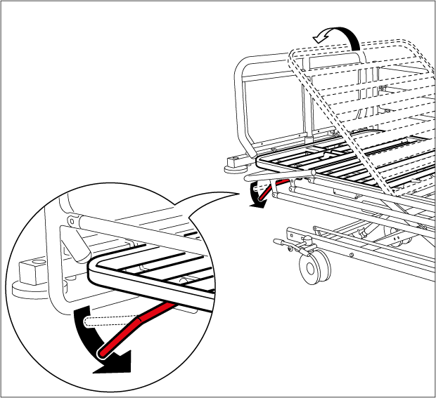 illustration till snabbguide/manual för hantering av olika funktioner på patientsängar.